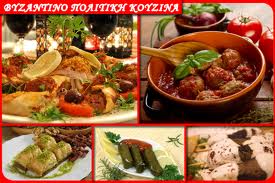 Η Βυζαντινη κουζινα ήταν παρόμοια με την αρχαιοελληνική κουζίνα, με διαφορά όμως ότι περιλαμβάνει νέα συστατικά που δεν ήταν διαθέσιμα στο παρελθόν, όπως το χαβιαρι, το μοσχοκαρυσο, τον βασιλικο και τα λεμονια, ενώ το ψάρι συνεχίζει να αποτελεί αναπόσπαστο μέρος της διατροφής. Η Βυζαντινή κουζίνα είχε επωφεληθεί από τη θέση της Κωνσταντινουπολης ως ένα παγκόσμιο κέντρο του εμπορίου των μπαχαρικων. ο πιο χαρακτηριστικό και αναπόσπαστο στοιχείο της ελληνικής κουζίνας είναι το ελαιόλαδο, που χρησιμοποιείται συχνά στα περισσότερα πιάτα. Παράγεται από τις ελιές και αποτελεί χαρακτηριστική γεύση της ελληνικής διατροφής. Η βασική παραγωγή σιτηρών στην Ελλάδα είναι το σιτάρι και το κριθαρι. Σημαντικά λαχανικά είναι οι ντοματες, οι μελιτζάνες, οι πατατες, τα φασολια, οι μπαμιες, οι πιπεριες και τα κρεμμυδια. Το μέλι στην Ελλάδα είναι κυρίως από το νέκταρ των οπωροφορων και εσπεριδοειδη. Η Μαστιχα είναι αρωματική φυσική ρητίνη που εξάγεται από το μαστιχοδεντρο που καλλιεργείται μόνο στο νησί της Χιου.Ελληνική κουζίνα χρησιμοποιεί κάποια αρώματα πιο συχνά από ο,τι άλλες μεσογειακές κουζίνες, δηλαδή: ριγανη, μεντα, σκορδο, κρεμμύδι, ανηθο και φύλλα δαφνης. Άλλα κοινά βοτανα και μπαχαρικά όπως ο βασιλικός, το θυμαρι και ο μαραθο σπόρων. Σε πολλές ελληνικές συνταγές, χρησιμοποιούνται γλυκό-μπαχαρικά σε συνδυασμό με κρέας, για παράδειγμα, η κανελα και το γαριφαλο.Τα ψάρια και τα θαλασσινά είναι περισσότερο κοινά όπως είναι φυσικό στις παραθαλάσσιες περιοχές και στα νησιά.Το κλίμα και το έδαφος της χώρας έχει την τάση να ευνοεί την εκτροφή αιγων (κατσικες) και προβατων περισσότερο απ' ότι βοειδων όπως οι αγελαδες και ως εκ τούτου πιάτα με ντόπιο βόειο κρέας είναι πιο σπάνια.Μια μεγάλη ποικιλία από τυριά χρησιμοποιούνται στην ελληνική κουζίνα, όπως η θετα, το κασερι, το κεφαλοτυρι, η γραβιερα, η φορμαελα, το ανθοτυρο, το μετσοβονε, η μυζηθρα και το χαλουμι (κυρίως στην Κυπρο).Οι ταβέρνες και κάποια εστιατόρια είναι από τους βασικούς χώρους που σερβίρουν παραδοσιακά ελληνικά πιάτα για τους ντόπιους και τους τουρίστες. Πρόσφατα, τα "fast food" έχουν γίνει επίσης δημοφιλής στην Ελλάδα και την Ευρώπη. Παρά το γεγονός ότι το γρήγορο φαγητό κερδίζει τη δημοτικότητα και πολλές μεγάλες αλυσίδες "fast food" έχουν ανοίξει σε όλη την Ελλάδα, οι Έλληνες εξακολουθούν να βασίζονται κατά κύριο λόγο στην πλούσια και εκτεταμένη ελληνική διατροφή. Επιπλέον, μερικά παραδοσιακά ελληνικά φαγητά, ειδικά το σουβλακι και η πιτα με γυρο συχνά σερβίρονται σε στυλ γρήγορου φαγητού.